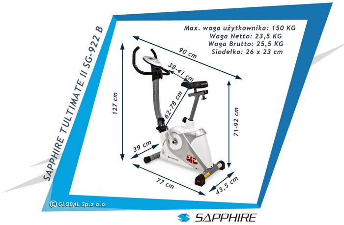 Pragniemy zaprezentować Państwu wysokiej jakości Rower elektromagnetyczny ULTIMATE II SG-922B marki Sapphire. Doskonały wybór dla osób dbających o swój wygląd i kondycję. Rower używany jest zarówno do treningu domowego, jak i podczas rehabilitacji. Ćwicząc, poprawiasz swoją sylwetkę, korzystnie wpływasz na kondycję fizyczną i spalasz zbędne kalorie. Dzięki naszemu urządzeniu, w krótkim czasie osiągniesz więcej niż myślisz: zdrowie, satysfakcję i świetny wygląd!